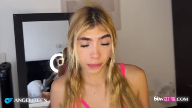 Skinny Blonde Gives Her First Blowjob on Camera