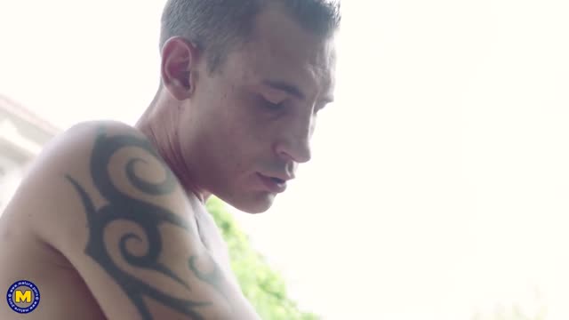 Horny granny seducing a young man for her own filthy pleasures